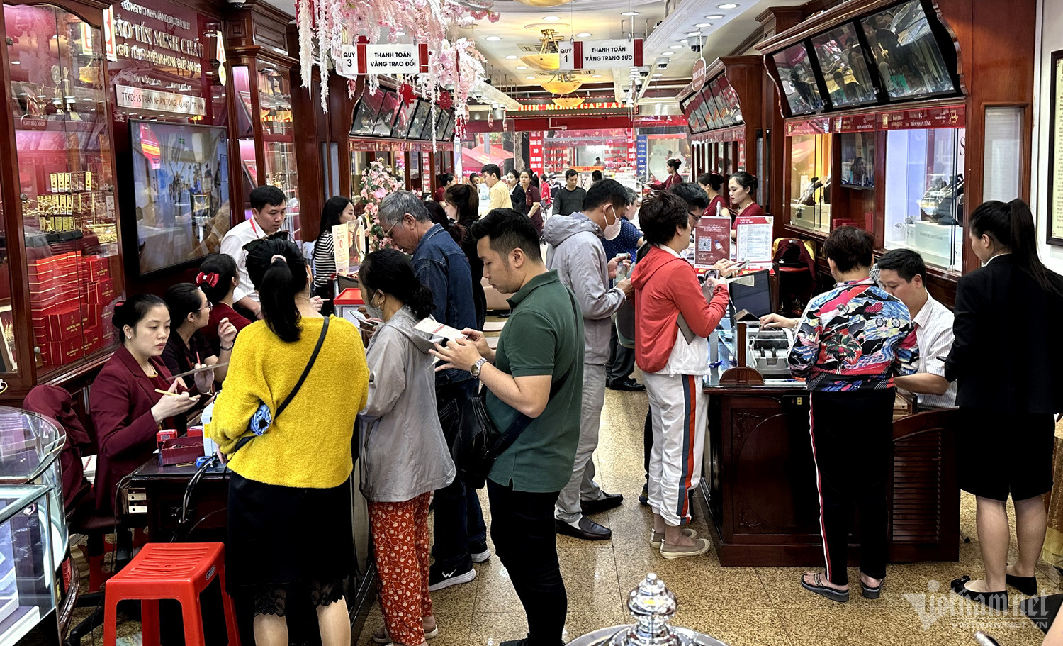 Với đà tăng phi mã của giá vàng, hoạt động mua bán kim loại quý này tại các cửa hàng diễn ra khá sôi động. Một số cửa hàng xuất hiện cảnh người dân xếp hàng dài chờ mua bán vàng ngay từ lúc mở cửa.