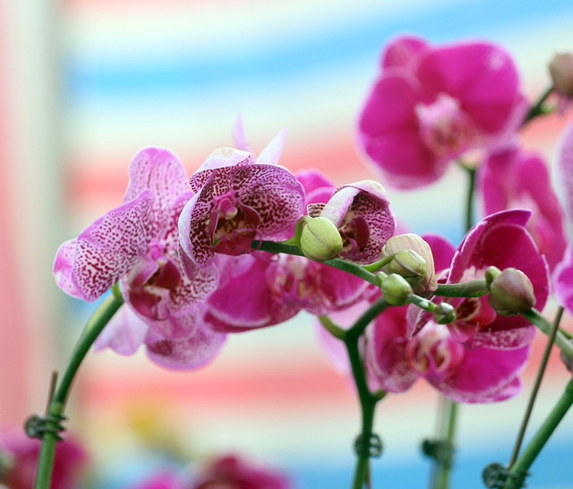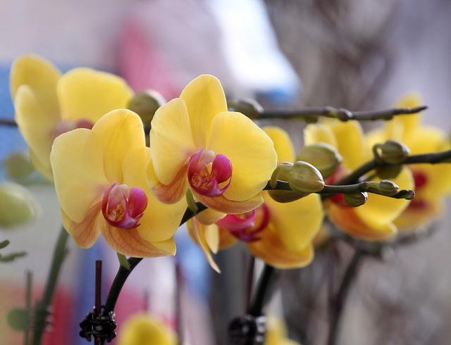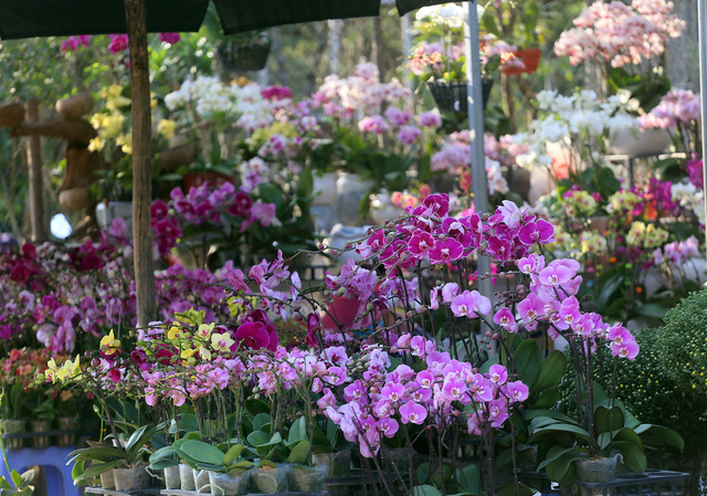 Những giỏ địa lan đủ sắc màu được bày bán tại chợ hoa Vạn Phúc (Hà Đông - Hà Nội) với giá chỉ trên 100.00 đồng đang thu hút đông đảo người dân kéo đến mua sắm.