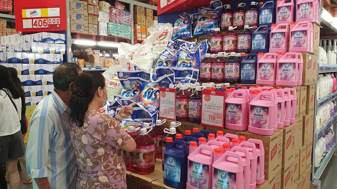 Chiều tối 29-4, khu vực kinh doanh hàng tiêu dùng, thực phẩm tươi sống, thực phẩm khô của MM Mega Market An Phú (TP Thủ Đức) tập trung khá đông khách. Loa phát thanh của siêu thị liên tục phát thông báo xin lỗi khách hàng vì số thùng các-tông chuẩn bị cho khách đóng gói hàng hoá đã hết. Xen kẽ với nội dung này là thông báo về các mặt hàng khuyến mãi "sốc" cuối ngày.