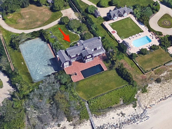 Ngôi nhà có thiết kế cổ điển theo phong cách của vùng Hamptons với khoảng sân rộng được lát gạch đỏ cũng hồ bơi bên cạnh bão biển. Bất động sản cũng kết hợp những bãi cỏ rộng được bao quanh bởi những hàng rào cao và vườn hoa, sân tennis và một hồ bơi nhỏ ngay bên cạnh.