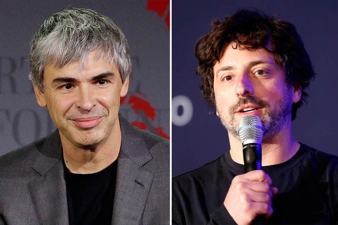 Larry Page và Sergey Brin đồng sáng lập Google năm 1998 khi đang theo học tiến sĩ tại Đại học Stanford. Cả hai lãnh đạo Alphabet nhiều thập kỷ trước khi rời đi hẳn vào tháng 12/2019.