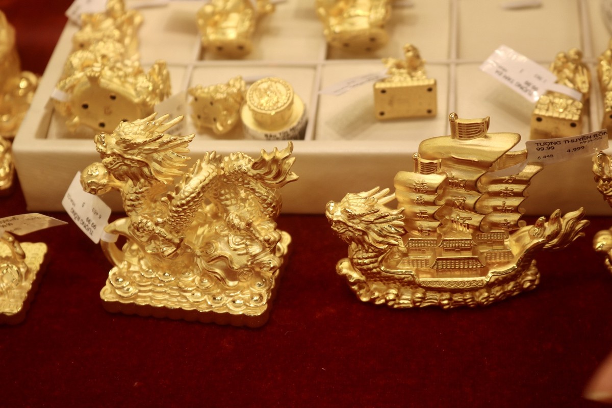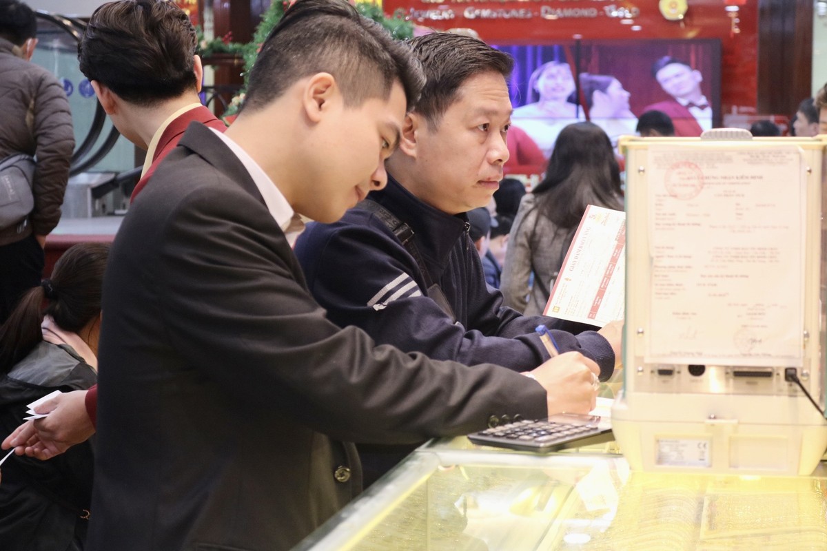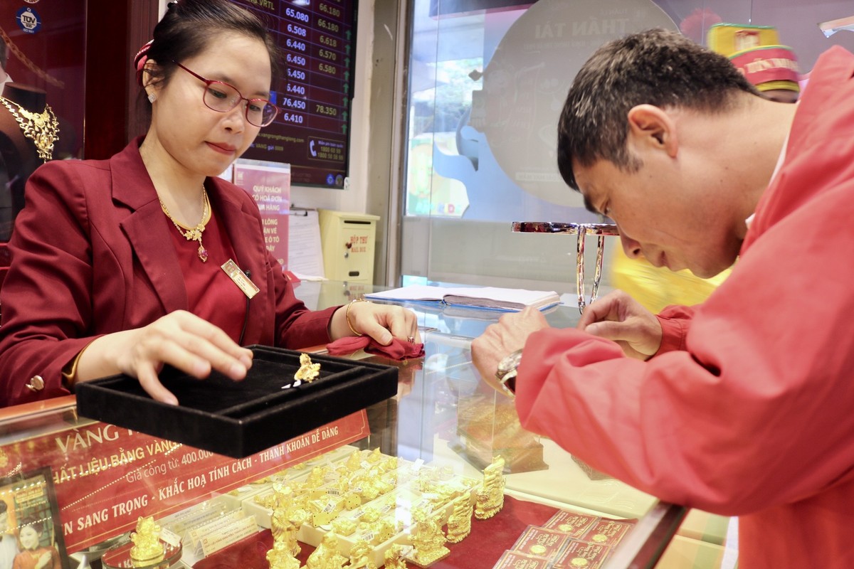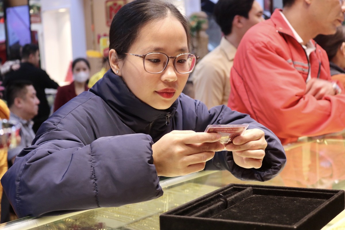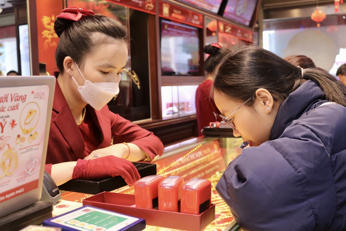 Dù chưa đến ngày vía Thần Tài (ngày mùng 10 tháng Giêng), nhiều người ở Hà Nội đã đến các cửa hàng để mua vàng cầu may.