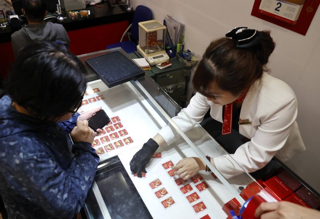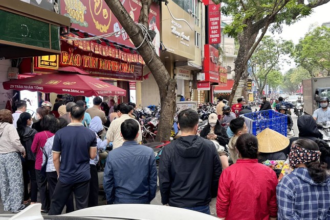 Theo ghi nhận, sau thông tin giá vàng nhẫn trong nước tăng cao, tại các cửa hàng vàng lớn ở đường Cầu Giấy và "phố vàng" Trần Nhân Tông - Hà Nội, lượng khách đến giao dịch tăng mạnh. Thậm chí, tại nhiều cửa hàng, khách xếp thành hàng dài, đa phần khách đến bán vàng để chốt lời khi giá vàng không ngừng lên đỉnh.