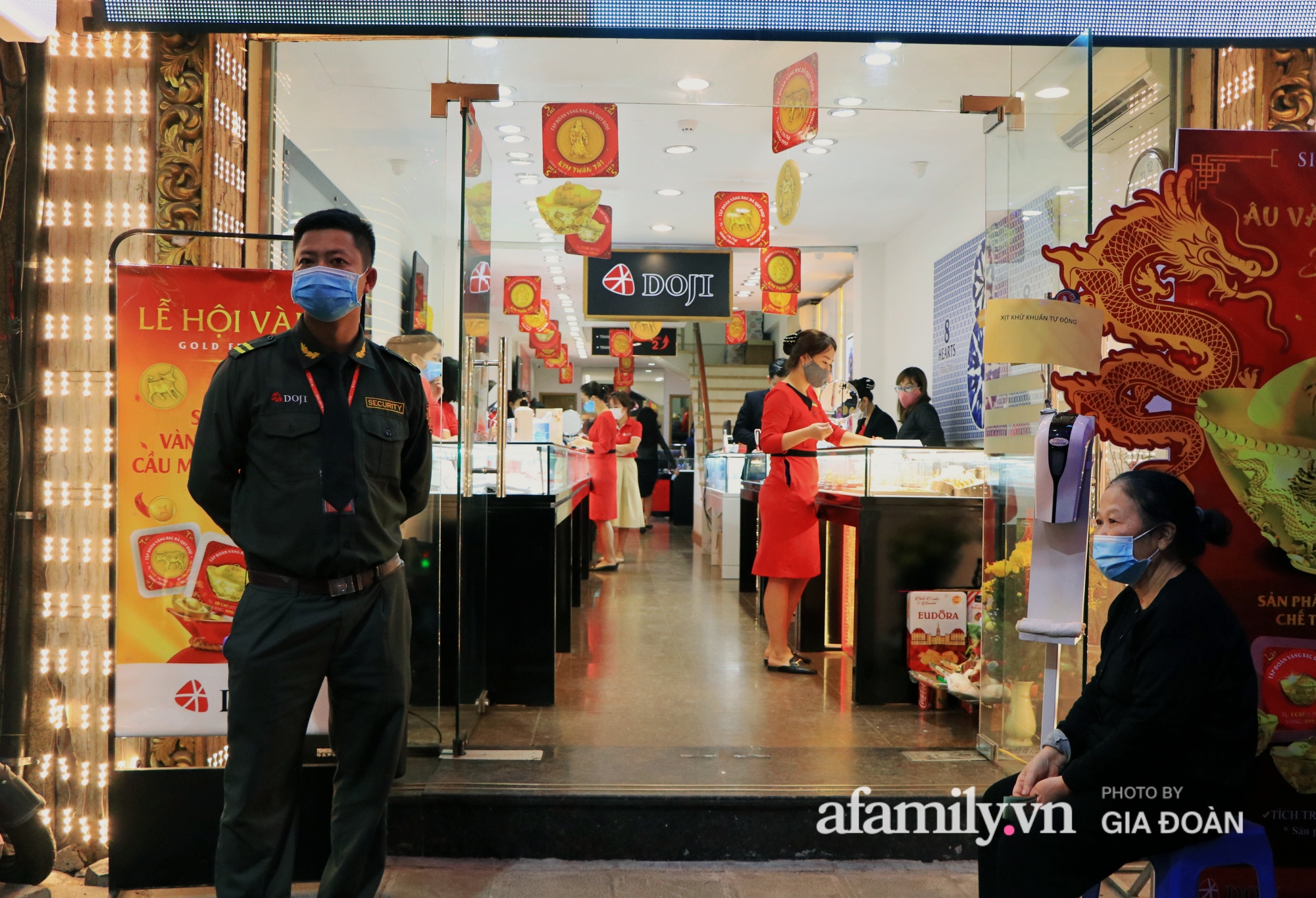 Tại tiệm vàng Bảo Tín Minh Châu, ngay từ sáng sớm đã có người dân tới xếp hàng đợi mua vàng. Để đảm bảo phòng dịch Covi-19 tiệm vàng này đã chuẩn bị sẵn vách ngăn, xếp ghế giãn cách để chủ động phòng dịch Covid-19. Bên cạnh đó, tiệm vàng đều chuẩn bị đo thân nhiệt, nước sát khuẩn, khẩu trang phục vụ khách hàng.