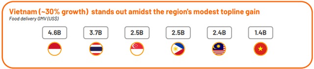 Tuy nhiên, so với các nước, quy mô giá trị đơn hàng (GMV) 1,4 tỷ USD của Việt Nam vẫn kém hơn mức 2,4 tỷ USD của Malaysia, 2,5 tỷ USD của Phillipnes và Singapore hay 3,7 tỷ USD của Thái Lan..., theo VnExpress.