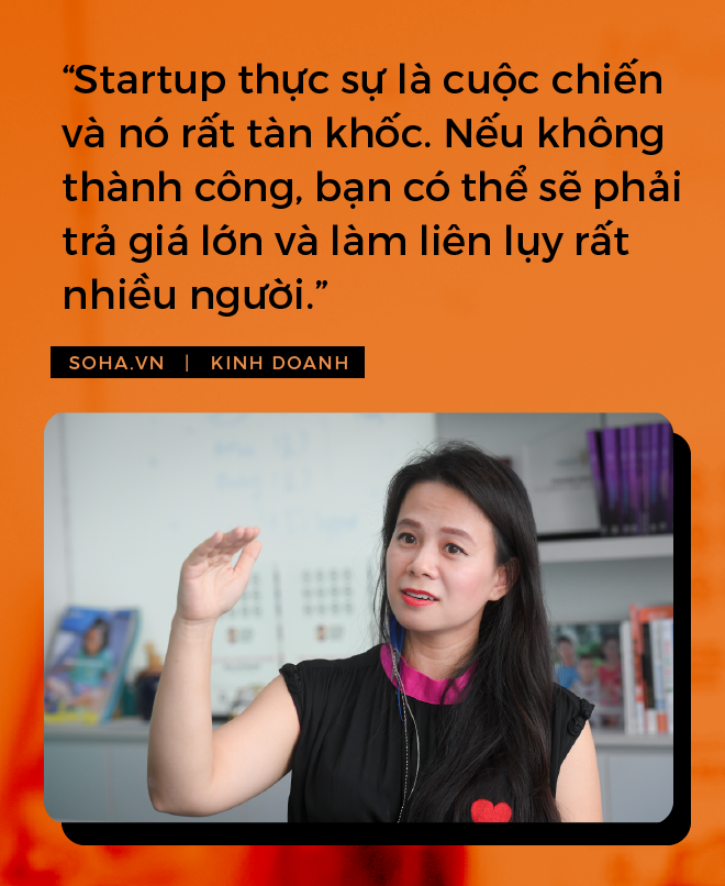 Làm startup, nhất là ở giai đoạn đầu sẽ cực kỳ bận rộn. Có thời điểm tôi đi công tác nhiều đến mức các con tôi chỉ mong mẹ ở nhà nhiều hơn. Nhiều lúc tụi nhỏ nói những câu làm tôi thấy xót xa. Ví dụ: "con chẳng cần gì ngoài việc mẹ ở nhà", "mẹ ơi mẹ ở nhà thêm một tí" hoặc "để con trả tiền cho mẹ ở nhà là được chứ gì".