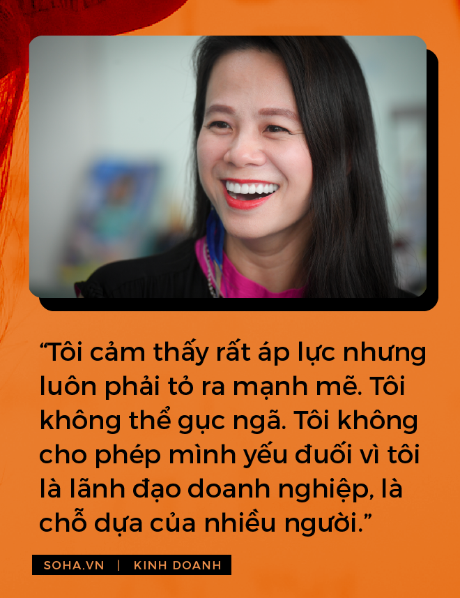Mặc dù rất áp lực, nhưng tôi luôn phải tỏ ra thật mạnh mẽ. Tôi không thể gục ngã. Tôi không cho phép mình yếu đuối vì tôi là lãnh đạo doanh nghiệp, là chỗ dựa của nhiều người.