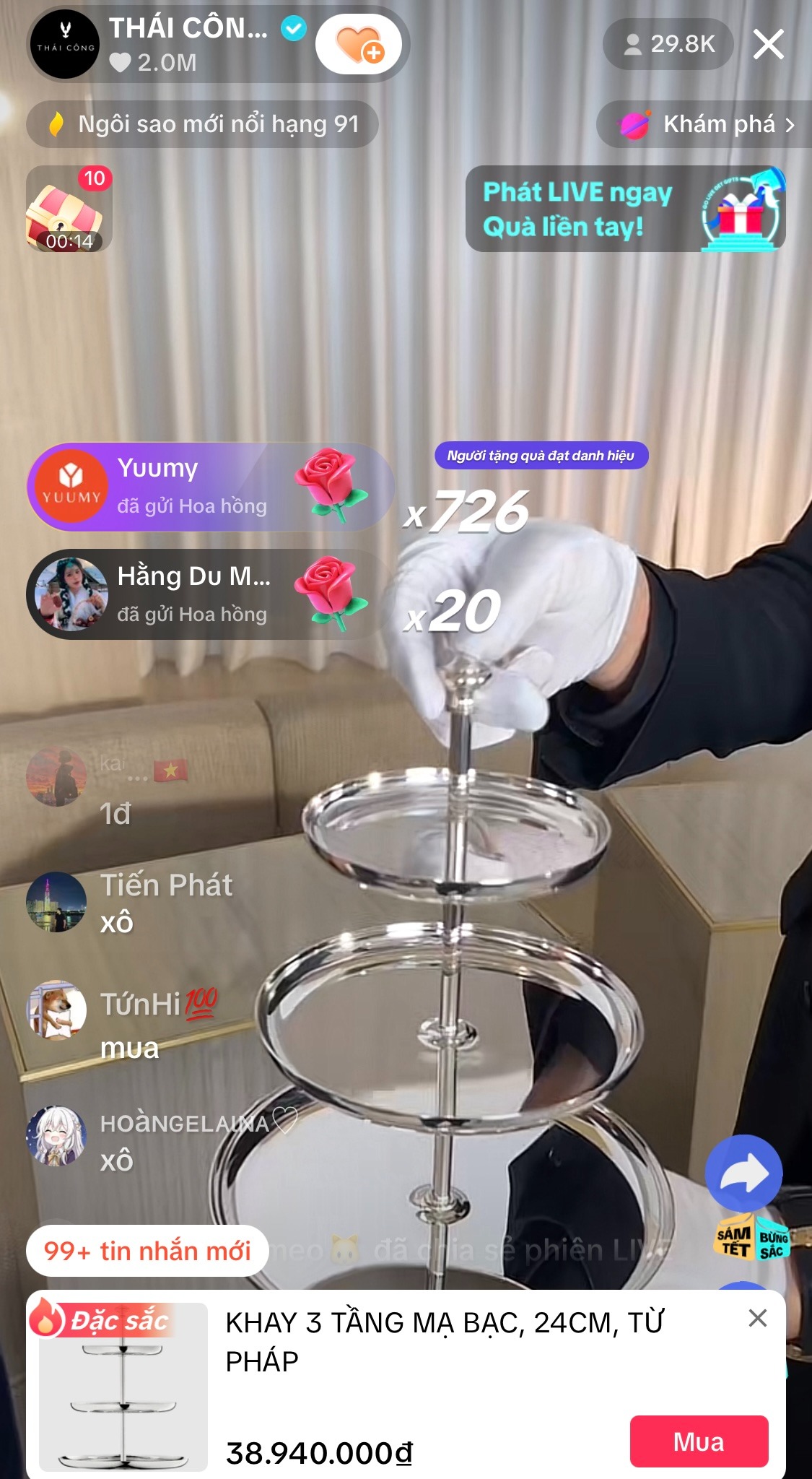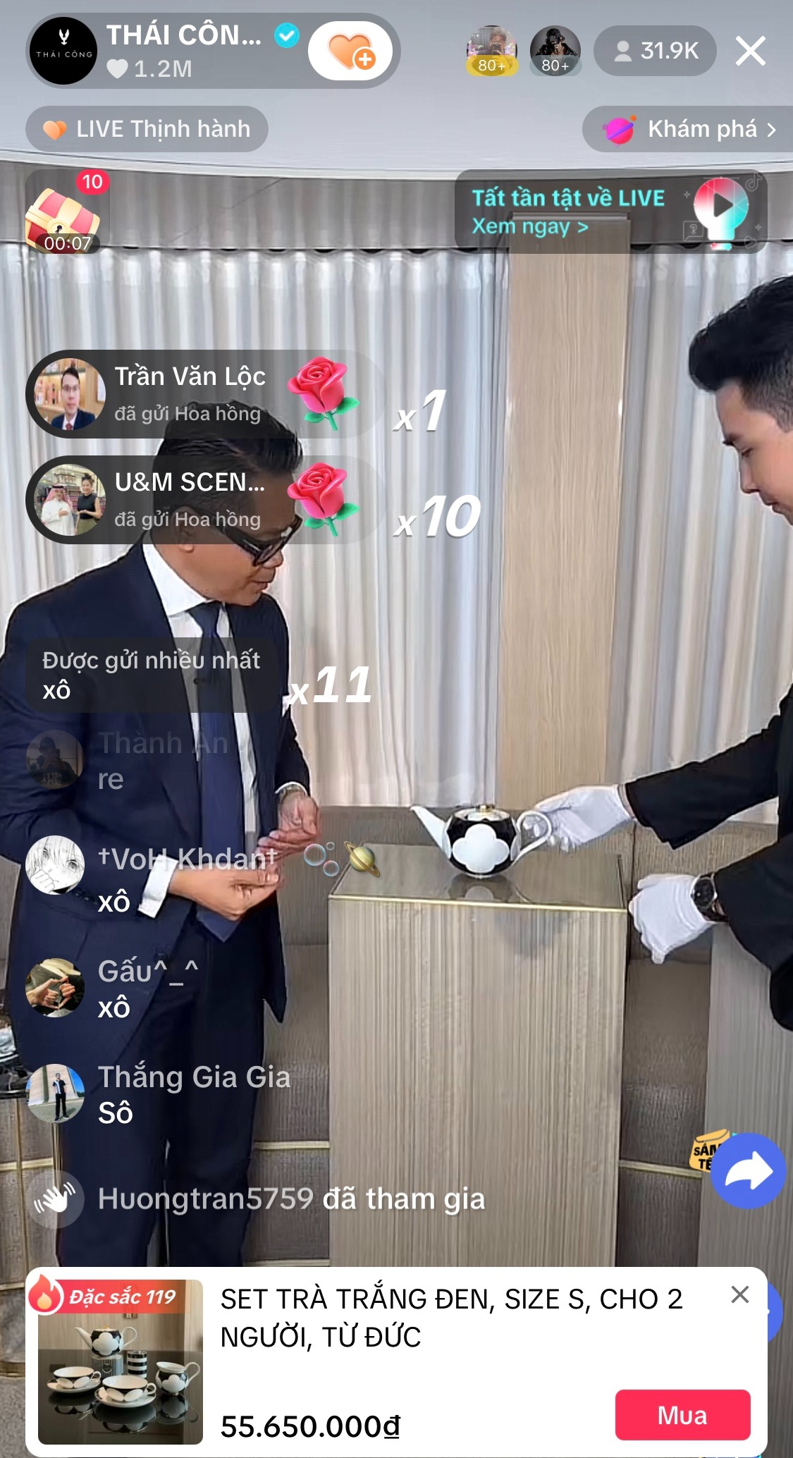 10/01/2024 17:01Người xem 'mắt chữ A, mồm chữ O' khi xem NTK Thái Công livestream bán hàng xa xỉ