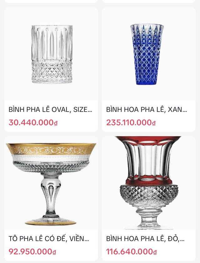 Ngoài ra, có một số sản phẩm đắt đỏ khác khiến người xem "giật mình" như khay 3 tầng mạ bạc từ Pháp 38.940.000 VNĐ, khay ăn mạ bạc từ Pháp 11.795.000 VNĐ, dụng cụ gắp đá từ Pháp 12.650.000 VNĐ, bình tinh dầu Reggio từ Pháp 5.980.000 VNĐ, kem đánh răng,...