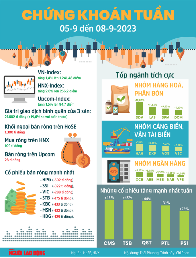 Một điểm chú ý là dù thị trường điều chỉnh giảm trước áp lực chốt lời ngắn hạn nhưng thanh khoản vẫn duy trì ở mức cao, cho thấy nhiều nhà đầu tư vẫn mạnh dạn mua vào khi có người bán ra. Cụ thể, thanh khoản tuần qua hồi phục đáng kể sau kỳ nghỉ lễ 2-9 với giá trị giao dịch bình quân 3 sàn (HoSE, HNX, UpCoM) lên tới 27.682 tỉ đồng (+19,6% so với tuần trước).