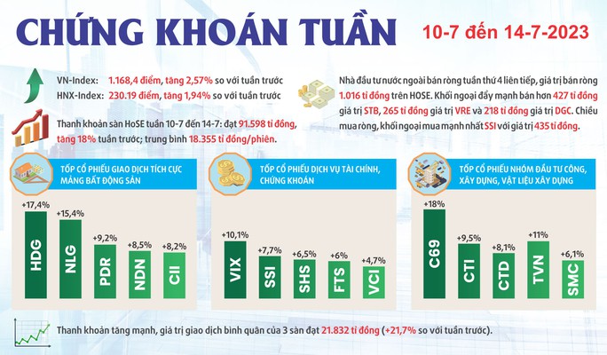 Trong phiên giao dịch cuối tuần qua (ngày 14-7), VN-Index ghi nhận phiên tăng điểm thứ 5 liên tiếp. Đây là phiên tăng điểm thứ 9 từ đầu tháng 7-2023, bất chấp những cảnh báo về một đợt điều chỉnh mạnh sắp diễn ra.