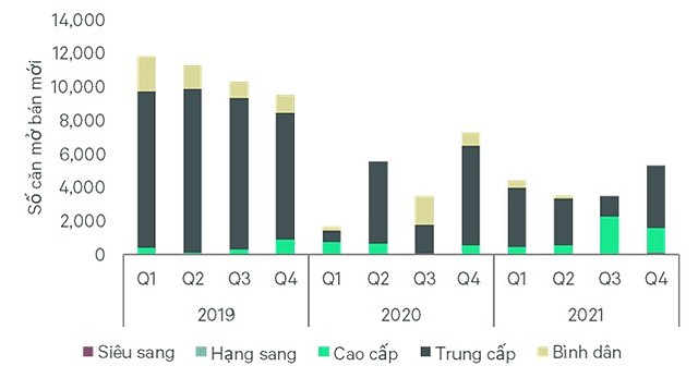 Trong năm 2022, nguồn cung chào bán mới dự kiến sẽ tăng trưởng trở lại, đạt ngưỡng 26.000 – 28.000 căn. Doanh số bán hàng dự kiến sẽ hồi phục trong năm khi các hoạt động bán hàng dần trở lại bình thường. Mức giá sơ cấp được dự báo tăng khoảng 5-7%/năm trong vòng 3 năm tới, do sản phẩm của các khu đô thị tiếp tục nâng cấp định vị cũng như kỳ vọng các dự án cao cấp và hạng sang mở bán ở một số vị trí đắc địa, trung tâm.