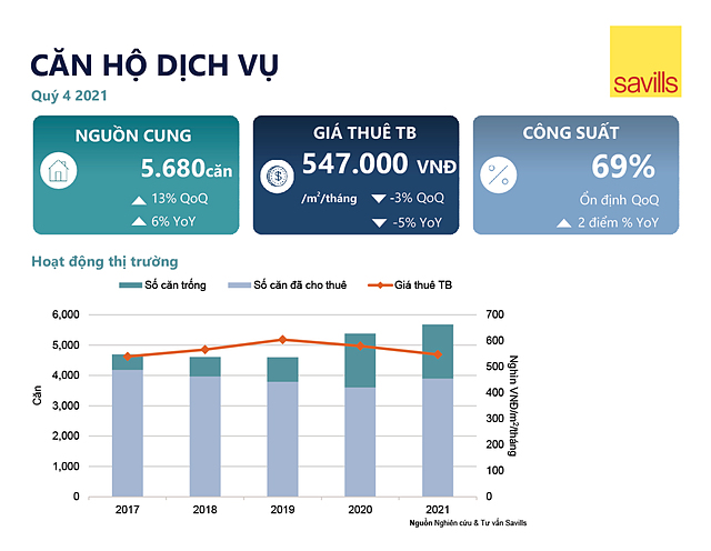 Theo báo cáo quý IV/2021 của Savills, hoạt động bất động sản tại Hà Nội bắt đầu ghi nhận những cải thiện tích cực trong ba tháng cuối năm. Trong đó, căn hộ dịch vụ là một trong những lĩnh vực sớm sôi động trở lại trong năm 2022.