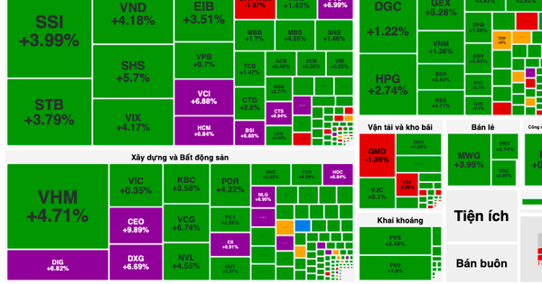 Các nhóm cổ phiếu tác động mạnh nhất tới thị trường mang tính dẫn sóng và đầu cơ như chứng khoán, bất động sản… xanh hoặc tím khi tăng hết biên độ. Tác động tích cực tới chỉ số VN-Index phải kể đến là VHM, HPG, GAS, SAB…