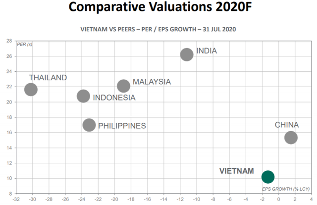 Về định giá thị trường, Dragon Capital cho rằng Việt Nam đang ở mức hấp dẫn so với các quốc gia trong khu vực với EPS năm nay chỉ âm 1,9%, trong khi P/E hiện mới quanh 11. Các quốc gia như Philippines, Indonesia, Malaysia, Thái Lan, Ấn Độ đều có P/E cao hơn nhiều dù EPS năm nay tệ hơn nhiều Việt Nam.