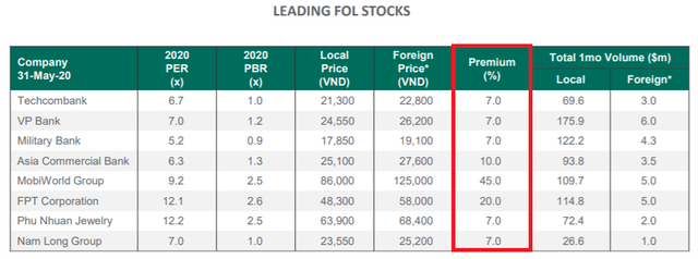 Tuy vậy, với các cổ phiếu đã kín room ngoại (FOL), Dragon Capital cho biết nhà đầu tư nước ngoài thường phải trả một khoản tiền chênh lệch lớn so với thị giá (premium) để sở hữu.