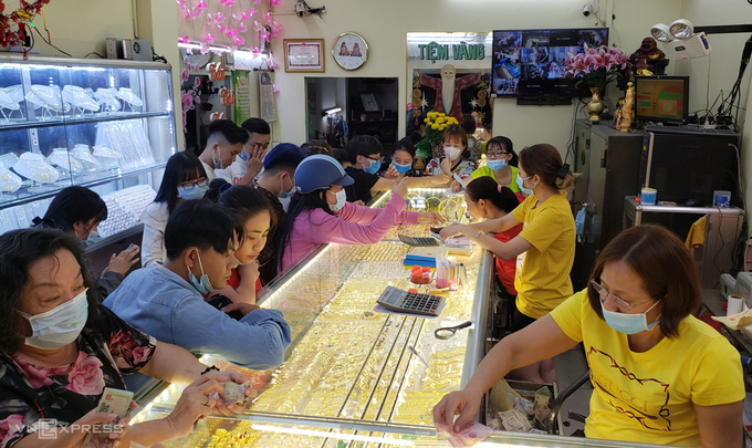 Chia sẻ với VnExpress, bà Nguyễn Thị Kim Oanh, Chủ tịch Công ty Vàng bạc Sacombank - SBJ nói: "Chưa năm nào như năm nay, sản xuất không kịp bán. Từ hôm qua tới nay, khách đến các cửa hàng SBJ ở Hà Nội và TP HCM rất đông với đủ nhu cầu từ số lượng nhỏ lẻ cho đến lớn".
