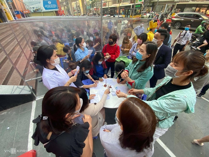Tại một cửa hàng của một số thương hiệu lớn, khách đều phải xếp hàng chờ hơn nửa tiếng vẫn chưa đến lượt.
