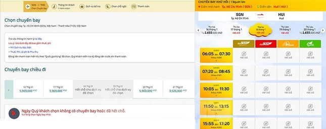 Với Vietjet, chặng TPHCM - Huế, TPHCM - Thanh Hoá từ 17-19/1/2023 đã hết vé, TPHCM - Vinh từ ngày 16-19/1 cũng hết vé...