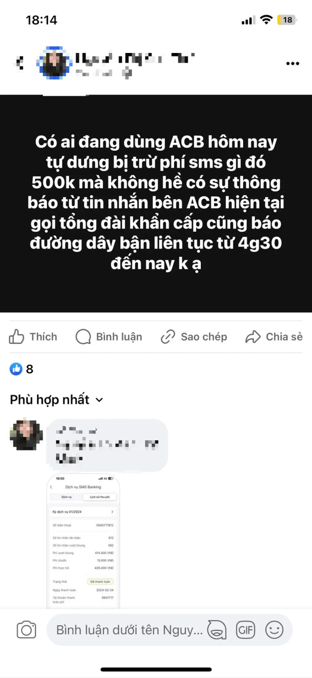 Vài ngày trở lại đây, công đồng mạng đồng loạt chia sẻ thông tin cảm thấy “sốc” khi nhận thông báo tin nhắn trừ tiền phí dịch vụ SMS banking hàng tháng của ngân hàng ACB với mức phí khiến nhiều người dùng không khỏi ngỡ ngàng.