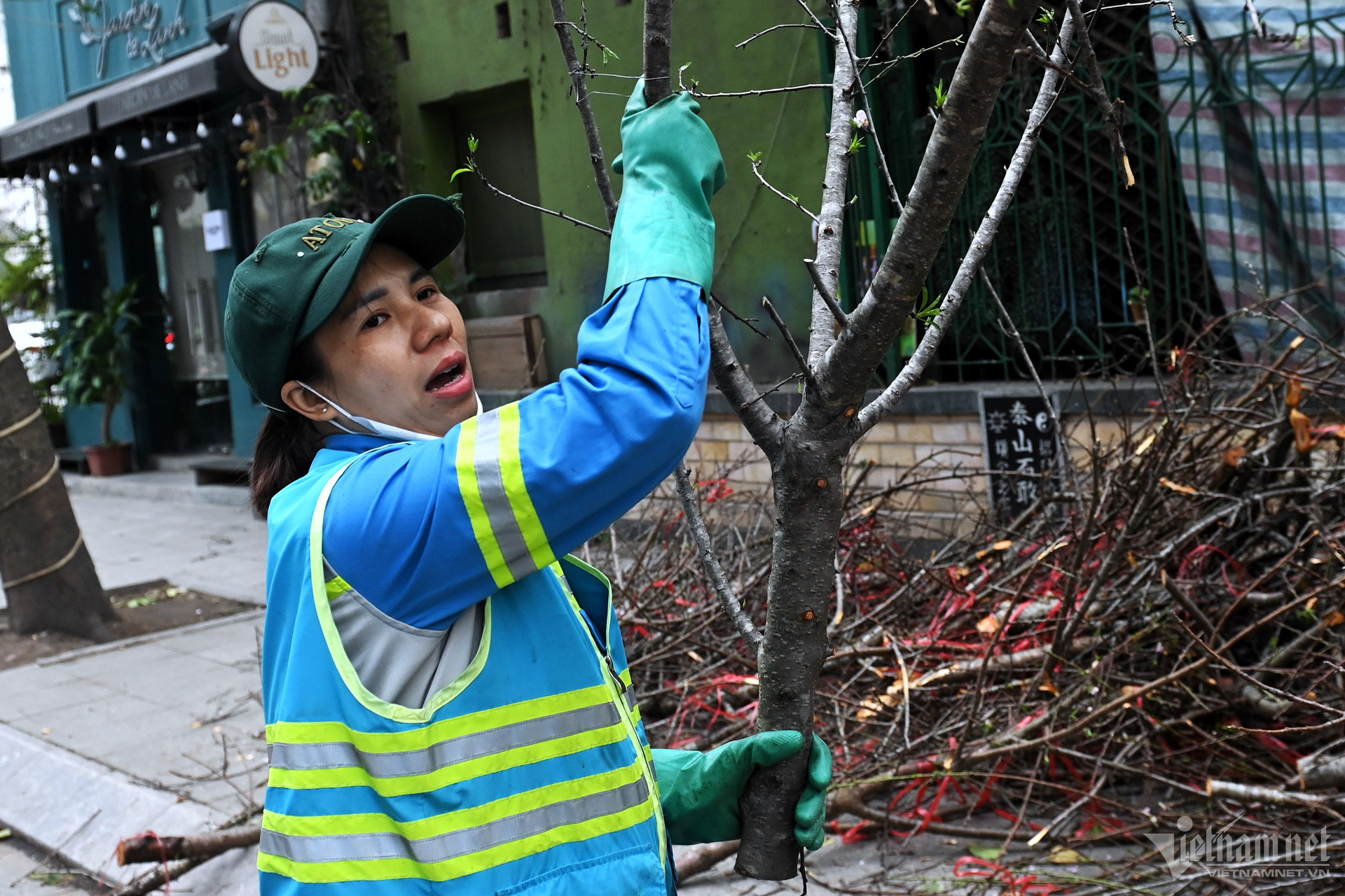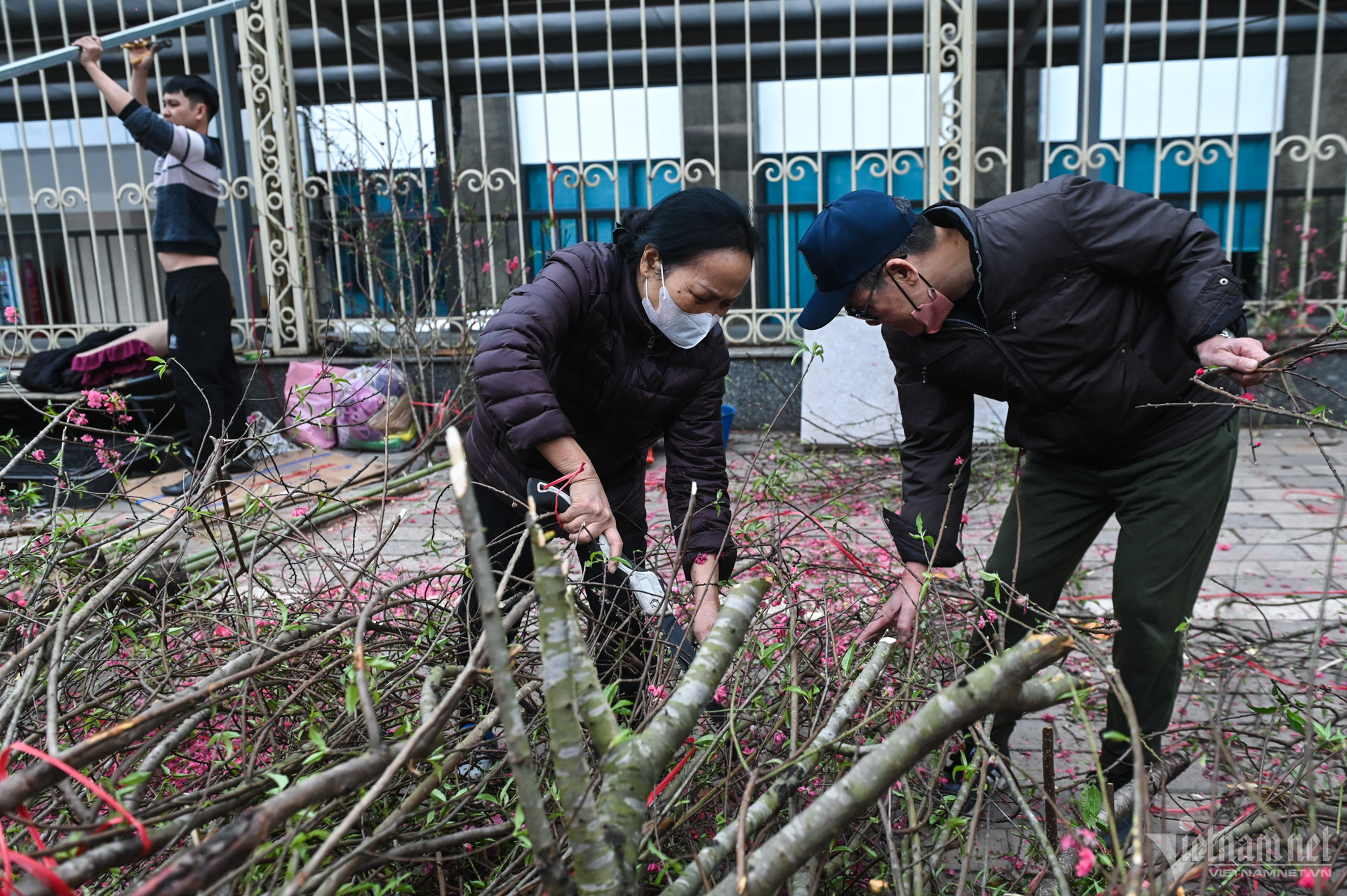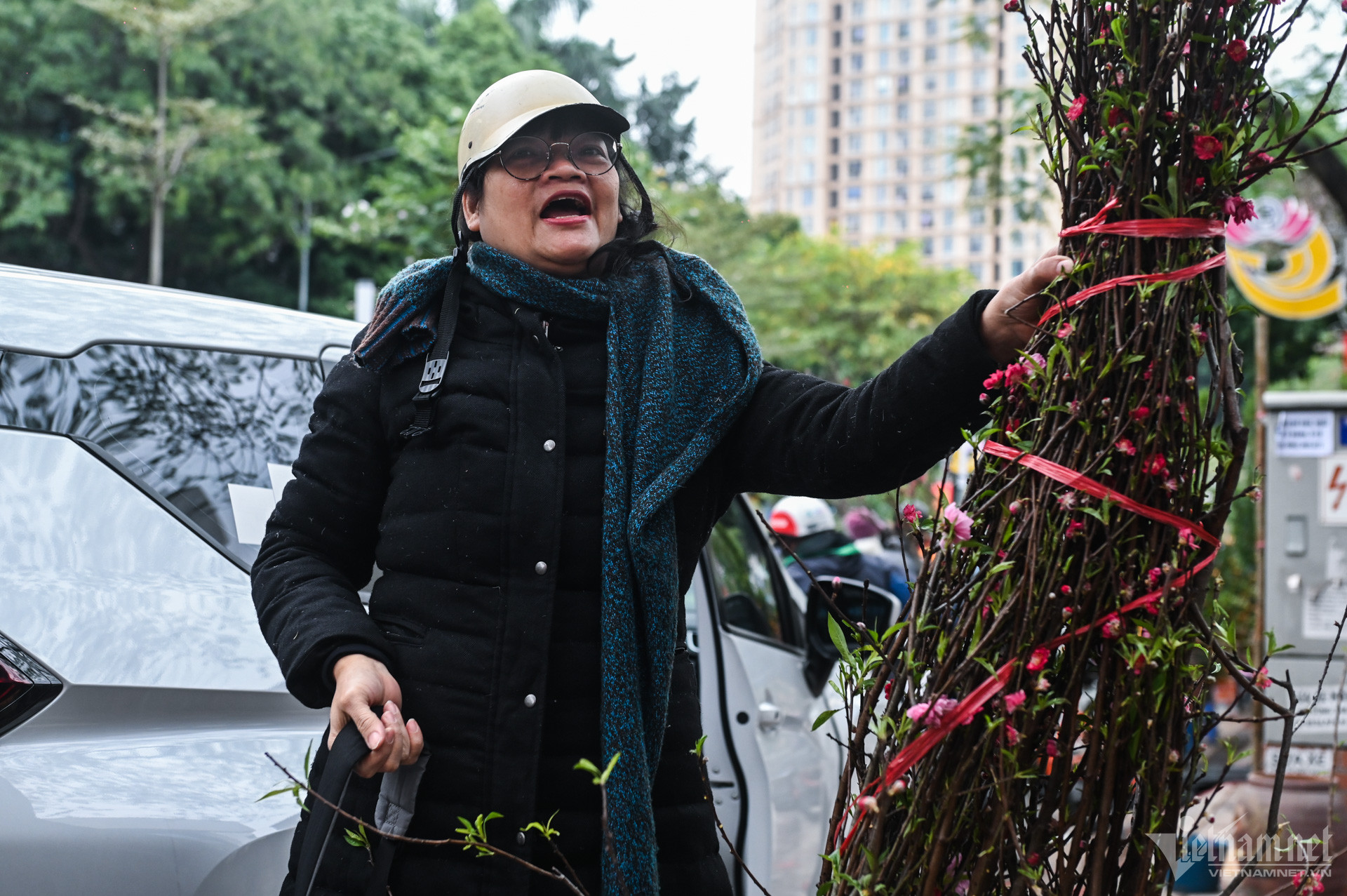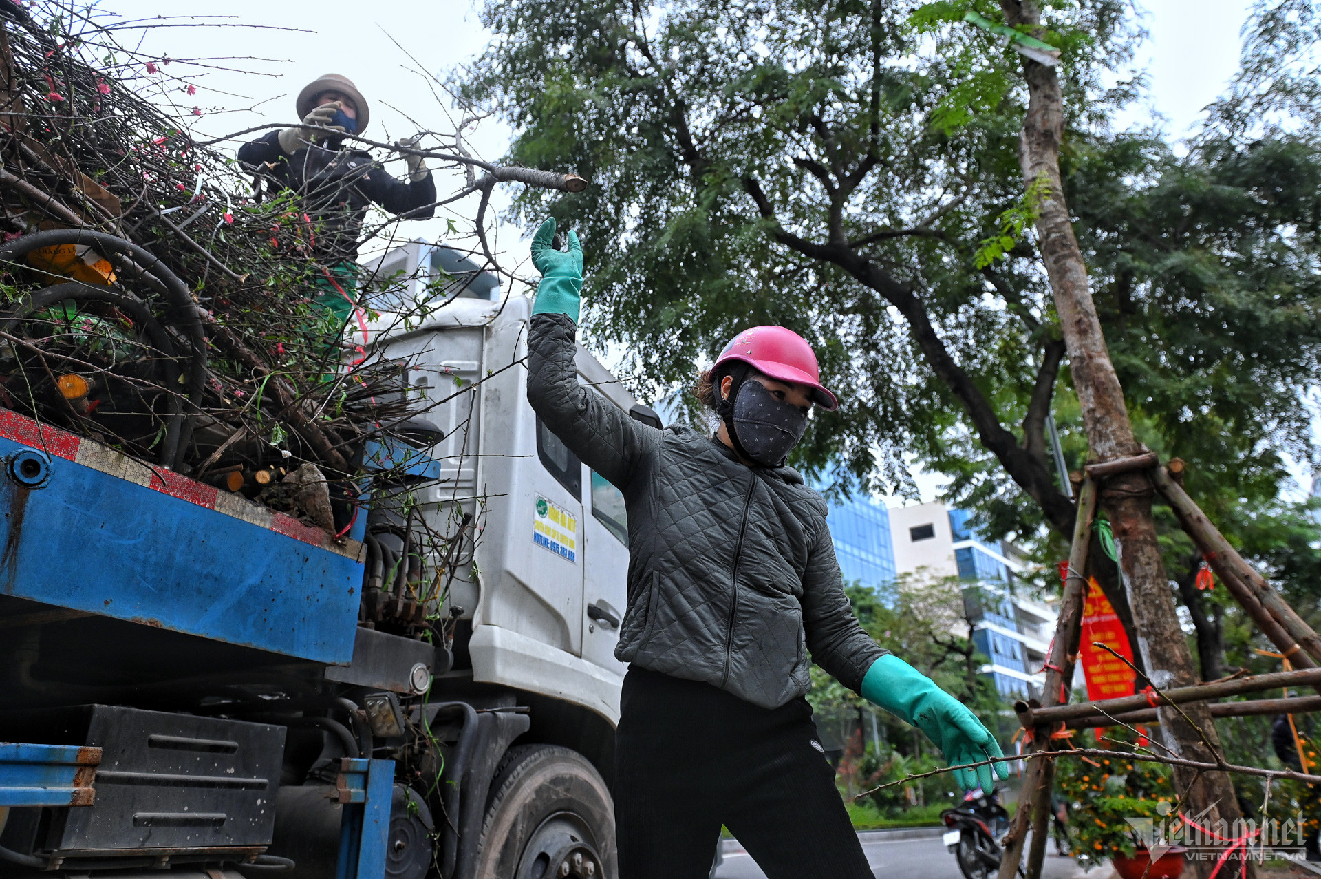 10/02/2024 02:51Nhiều người xin cành đào chiều 30 Tết, tiểu thương quyết chặt bỏ cho lên xe rác