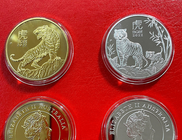Tiền xu hổ mạ vàng, bạc của Úc có giá 200.000 đồng/cặp. Mặt sau của cả 2 đồng tiền là hình ảnh nữ hoàng Elizabeth II, đại diện cho tính biểu trưng của nước Úc; mặt còn lại là hình chú hổ đứng trên vách núi. Đồng xu in hình Đức Phật Như Lai, biểu tượng của điềm lành, sự bình yên và an lạc giá 50.000 đồng/xu, mua 10 xu giá 450.000 đồng.