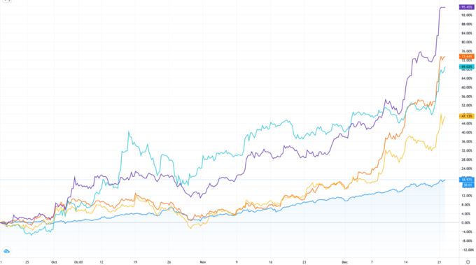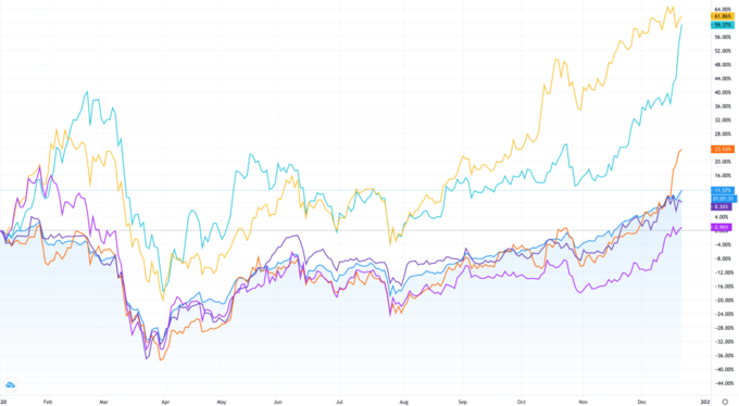 Đà tăng của nhóm này là động lực để thị trường phục hồi từ cuối quý I đến hết quý II. Tính đến phiên 21/12, VN-Index tăng gần 12% so với đầu năm, tuy nhiên nhiều mã ngân hàng đã tăng hơn 60%