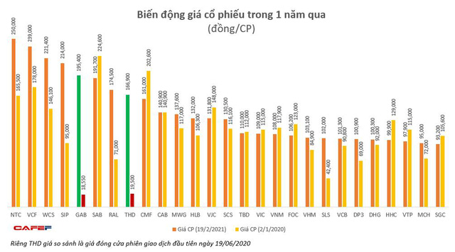 THD cũng trở thành hiện tượng khi gia nhập nhóm cổ phiếu đắt đỏ, tước đó vào tháng 6/2020 ThaiHoldings đóng cửa phiên giao dịch đầu tiên với mức giá 19.500 đ/Cp nhưng đã liên tiếp tăng trần 17 phiên liên tiếp sau đó, đóng cửa phiên giao dịch ngày 19/2/2021 ở mức 166.900 đồng/cổ phiếu.