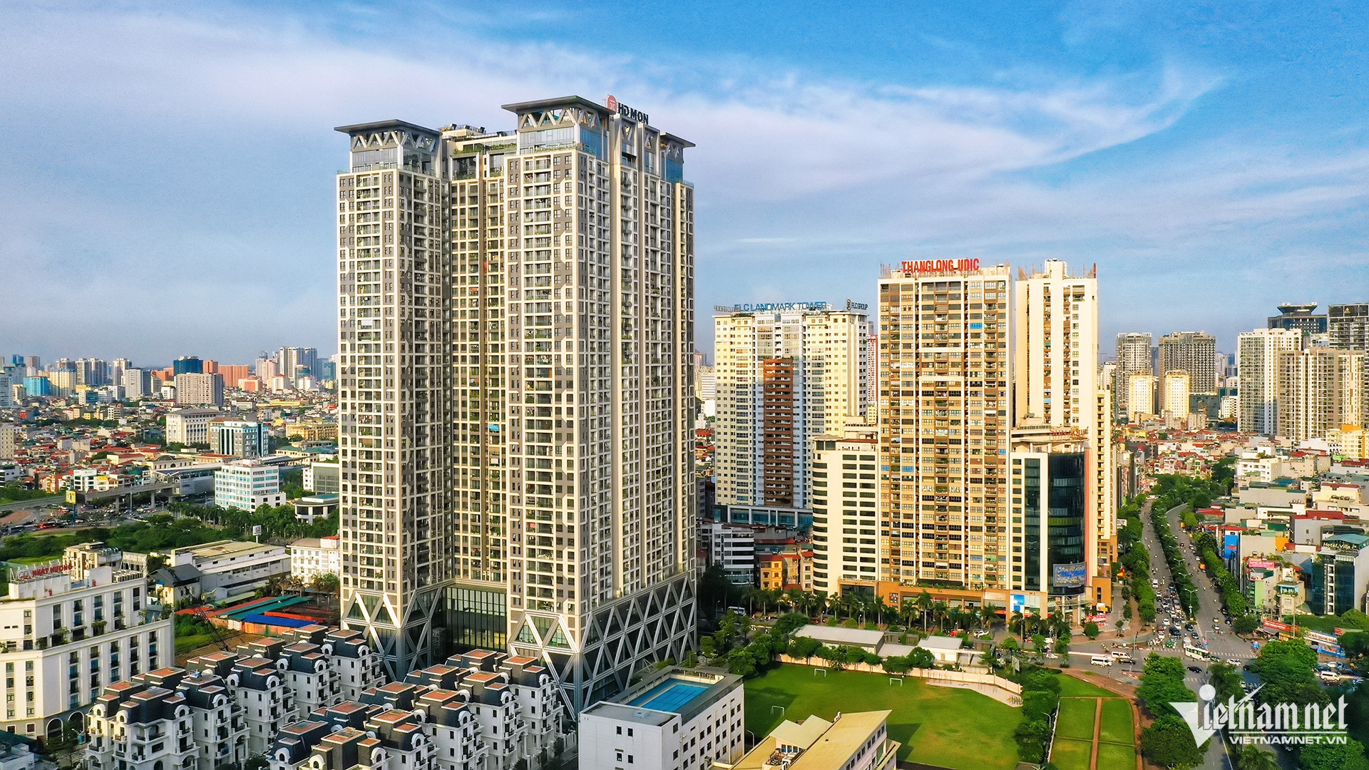Quận Nam Từ Liêm: Quận Nam Từ Liêm có khá nhiều khu đô thị "hot", có thể kể đến các tòa chung cư và nhà liền kề tại Mỹ Đình, Mễ Trì, Sông Đà - Sudico, Trung Văn và gần đây nhất là Vinhome Smart City... Hiện một căn chung cư ở tòa Sông Đà Sudico có giá khoảng 60 triệu/m2 tùy căn, cao hơn gấp đôi so với thời điểm đầu năm 2023. Còn dự án cao cấp The Manor (bên trái ảnh) trung bình từ 80 - 90 triệu/m2.