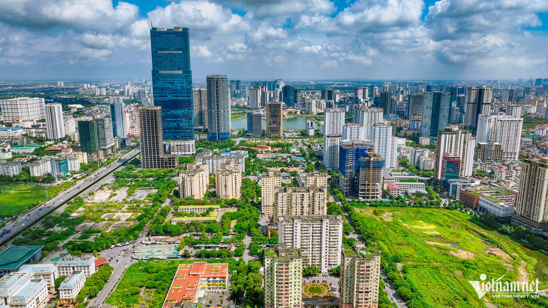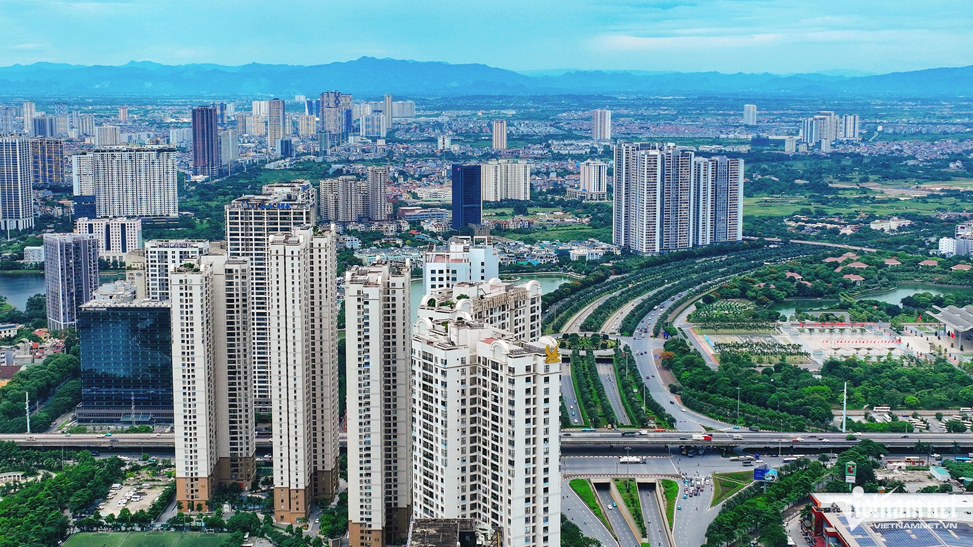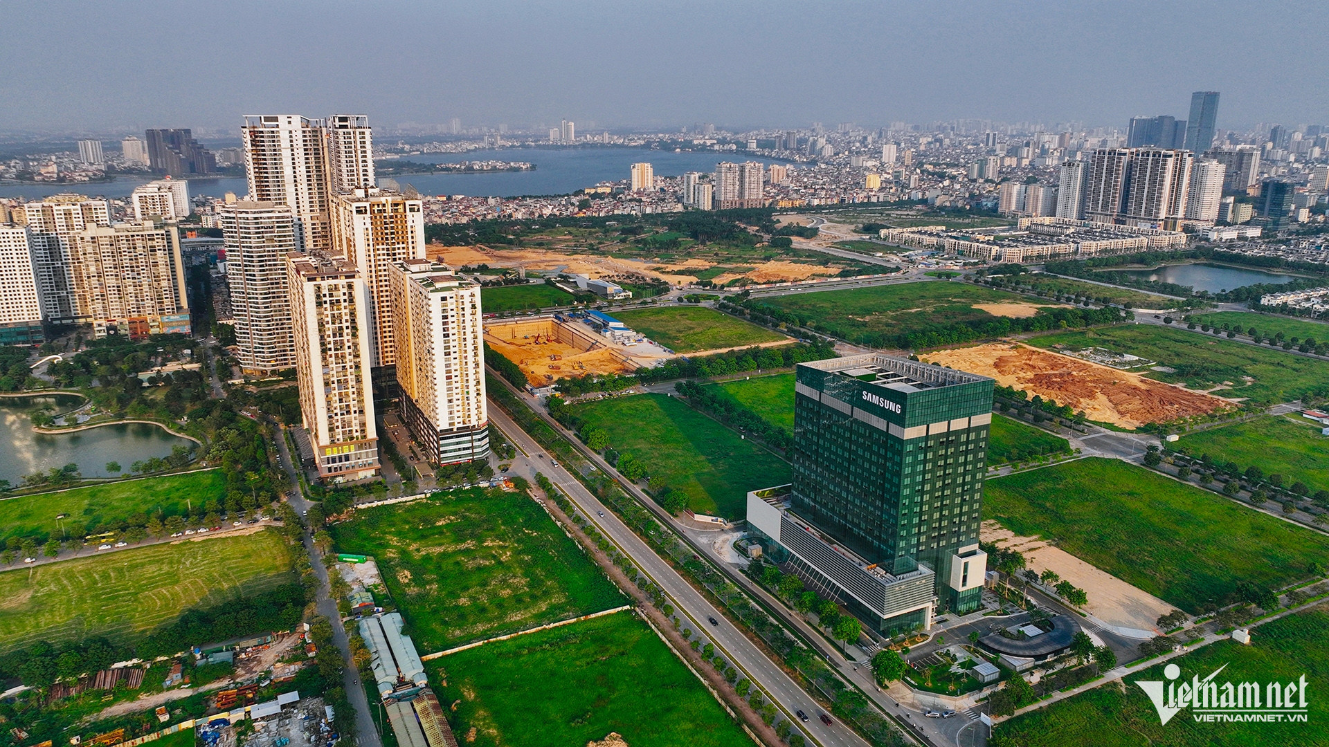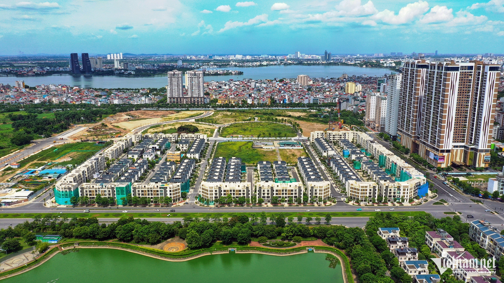 Quận Tây Hồ: Kế bên dự án Ngoại Giao Đoàn (bên trái) là Khu đô thị mới Tây Hồ Tây (bên phải, thuộc 2 quận Tây Hồ và Bắc Từ Liêm) rộng gần 190ha. Tiến độ thực hiện khu đô thị Tây Hồ Tây được chia thành 2 giai đoạn. Giai đoạn một được chủ đầu tư triển khai từ năm 2010 đến năm 2019, tổng diện tích thực hiện gần 1,15km2.