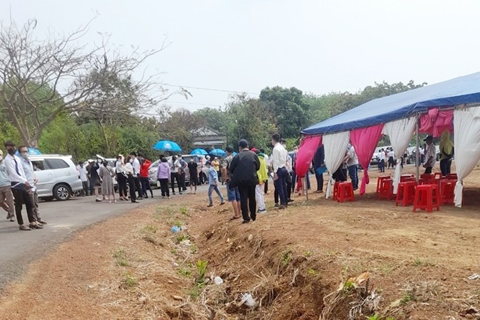 Trước đó, vào cuối tháng 2/2022 cũng tại tỉnh Bình Phước, mạng xã hội cũng từng xôn xao với clip ghi ở 1 bãi đất trống, bên cạnh con đường có hàng chục chiếc ô tô đang đậu là cảnh lãnh đạo và nhân viên công ty bất động sản liên tục chạy thông báo chốt cọc hàng loạt lô đất nền với 1 MC, tạo cơn sốt đất.