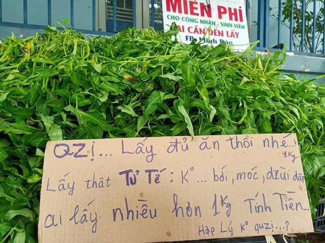 Và không chỉ Minh Râu mới cho chúng ta thấy nghĩa cử đẹp đẽ của tình người, tình đồng bào giữa lúc khó khăn. Ngày 13/7, gần ngàn hộp muối sả và hơn 100kg rau, củ quả của nhóm bạn trẻ và những nông dân vùng đầm phá Tam Giang, huyện Quảng Điền (Thừa Thiên-Huế) gom góp đã được gửi theo xe khách vào tặng cho những người làm bốc vác đang tá túc tại các phòng trọ ở TP Hồ Chí Minh.