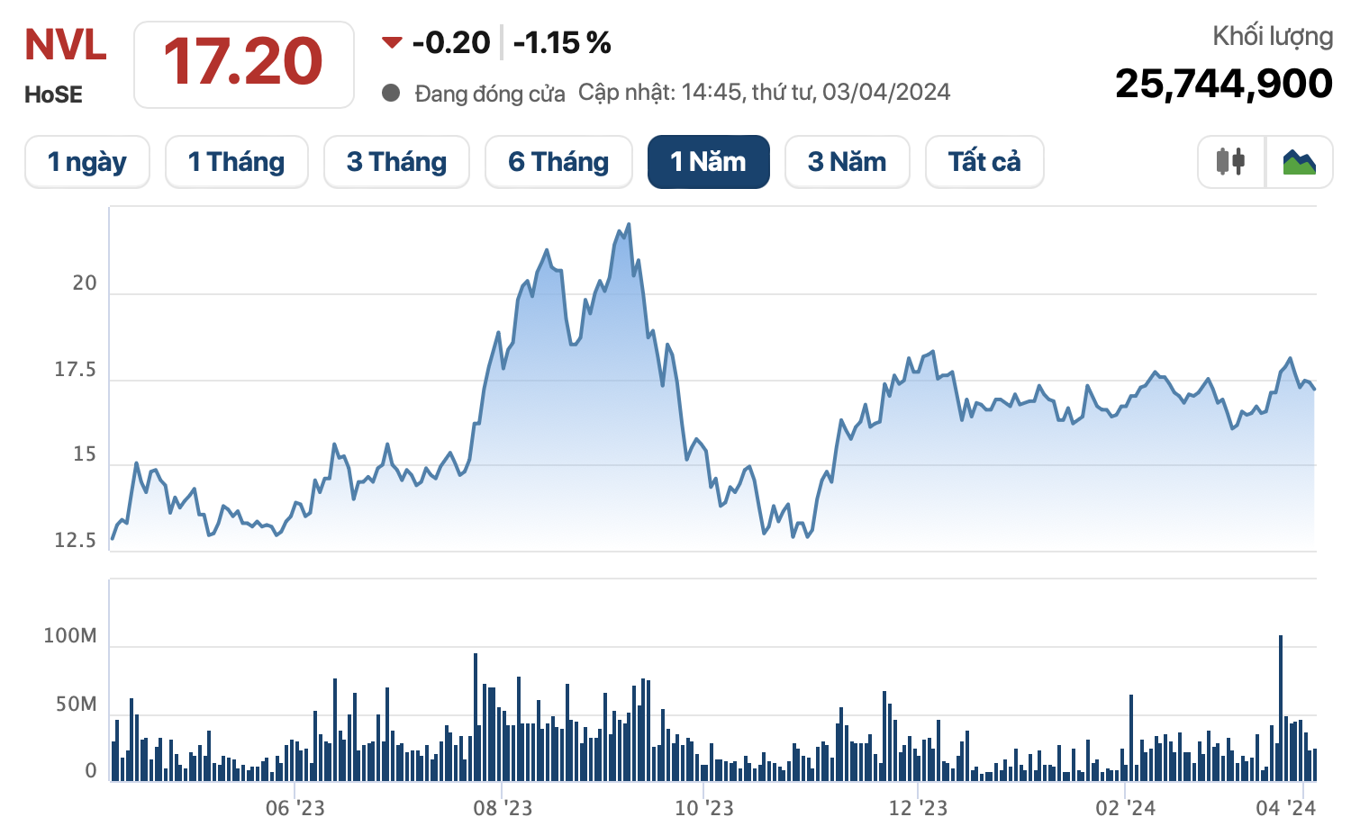 Trên thị trường, cổ phiếu NVL đang dừng ở mức 17.200 đồng/cp, tương đương thời điểm đầu năm. Vốn hóa thị trường tương ứng vào khoảng 33.500 tỷ đồng.