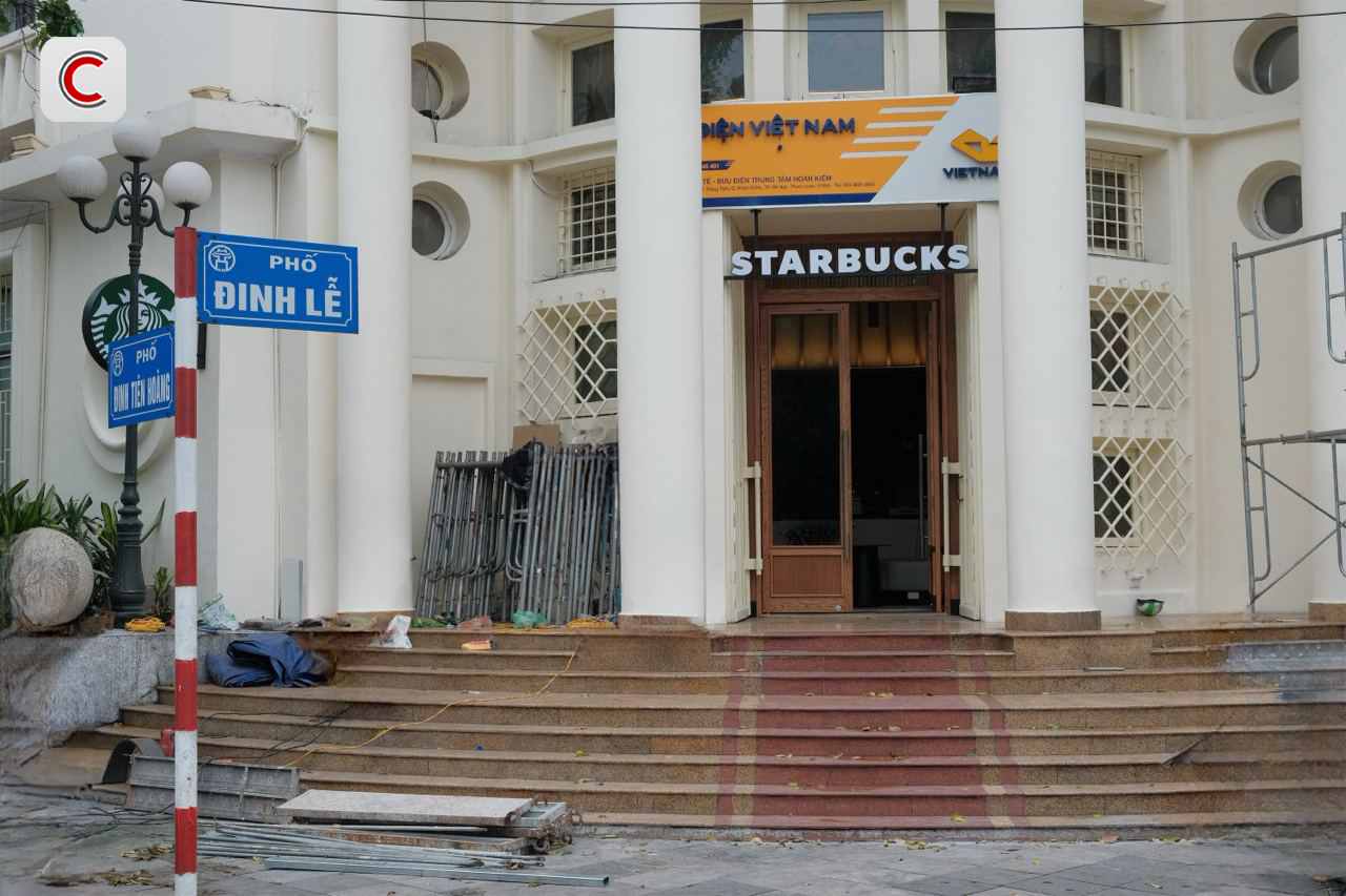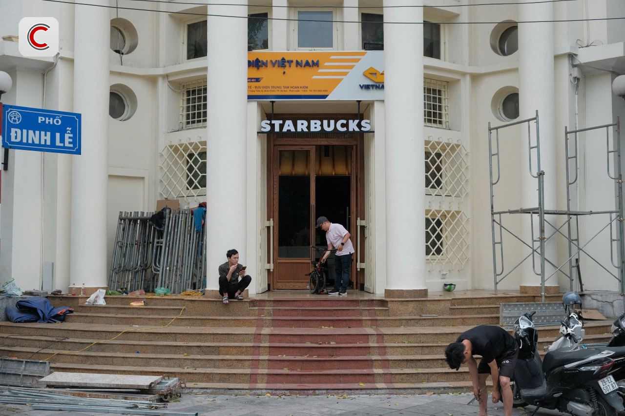 Theo quan sát mới nhất, Starbucks Việt Nam đang rục rịch cho sự ra mắt cửa hàng mới tại số 75B phố Đinh Tiên Hoàng, phường Tràng Tiền, quận Hoàn Kiếm, địa điểm từng là Bưu điện Hoàn Kiếm cũ.