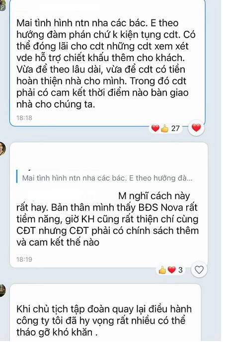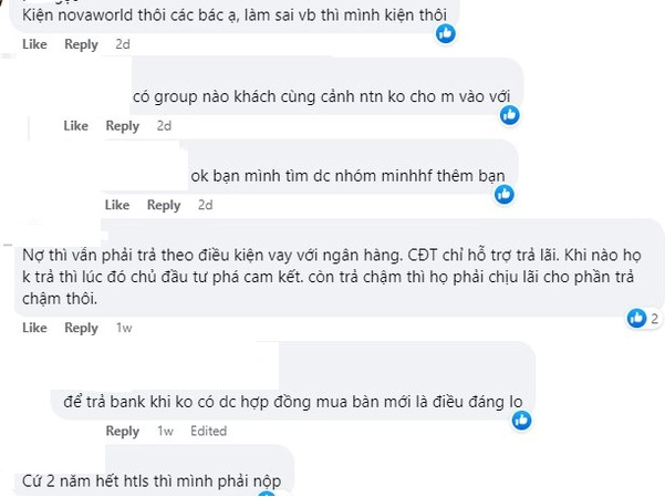 Trước thông báo mà Công ty đưa ra, nhiều khách hàng rơi vào tình trạng “như ngồi trên đống lửa” khi mức lãi suất hiện tại đang tăng cao. Theo thông tin ghi nhận trên Nhịp sống thị trường, nhiều khách hàng mua dự án NovaWorld Phan Thiết đang chia sẻ trên các nhóm, diễn đàn.