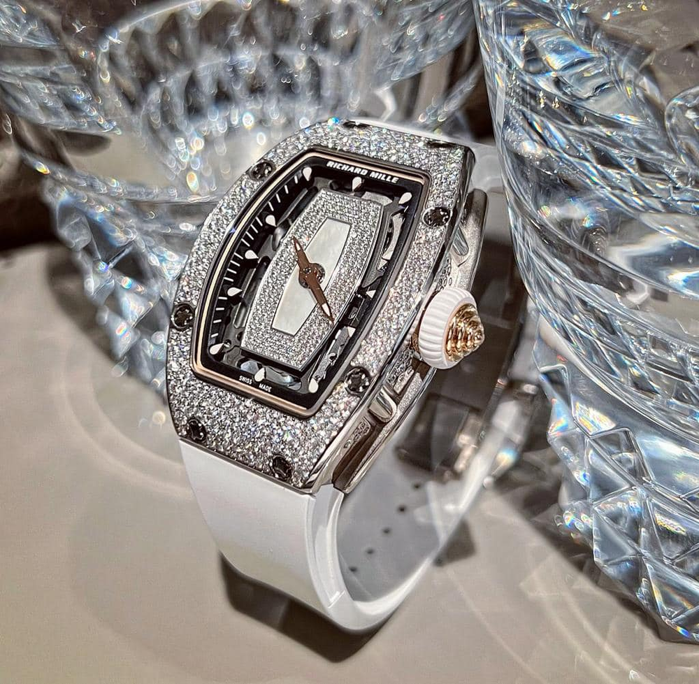 Đến lượt RM07-01 phiên bản Snow Fullset WG MOP đính toàn kim cương càng là một ví dụ điển hình trong BST của nữ đại gia. Phiên bản đồng hồ này được sản xuất với số lượng cực kỳ hạn chế. Đã từng có nhiều người tìm kiếm phiên bản giới hạn này nhưng không phải ai cũng gặp may mắn.