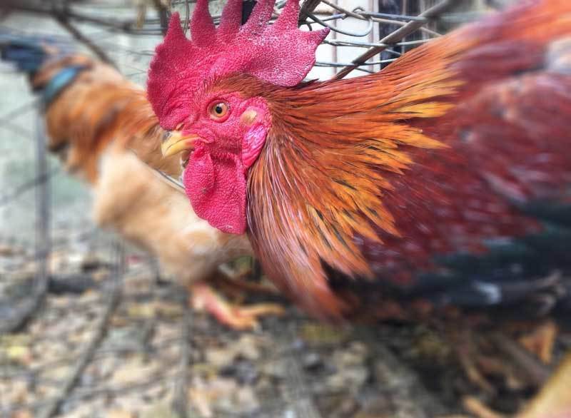 Dịp Tết Tân Sửu này, anh sở hữu những chú gà trống có 9 cựa màu đỏ tía, khoảng 2 năm tuổi. Giá trị của con gà này không chỉ bởi chân cựa đẹp, đủ ngón, chân vàng mà còn ở màu mã, bộ lông đẹp, mào cờ tròn đều như chiếc vương miện và hình dáng bệ vệ, có trọng lượng gần 2,5kg.