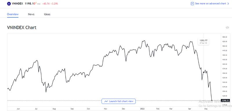 Thực tế, sau khi lập đỉnh cao nhất lịch sử ở mức 1.524 điểm hôm 4/1, chỉ số VN-Index đã lao dốc không phanh xuống dưới 1.200 điểm vào đầu giờ chiều 13/5.