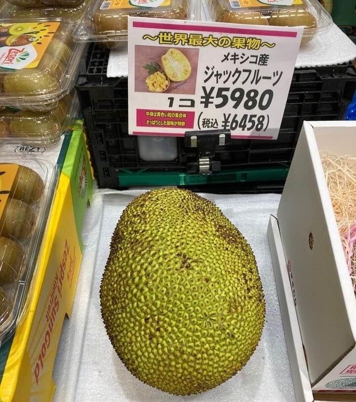 Cộng đồng du học sinh Việt Nam tại Nhật chia sẻ hình ảnh những quả mít bày bán tại siêu thị có mức giá mà người Việt phải giật mình. Một quả mít tính theo giá tiền Việt được bán tại siêu thị bên Nhật có giá từ 1,5 triệu đồng. Tính trung bình mỗi kg mít cũng lên tới tiền trăm.