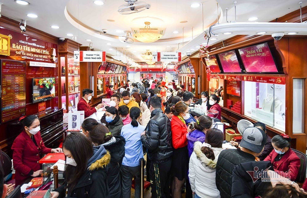 Dù đã ôm một lượng vàng khổng lồ, song vào ngày vía Thần Tài rất nhiều người vẫn thích đi mua thêm vàng để cầu may mắn, tài lộc. Đây cũng là lý do, vào ngày vía Thần Tài hàng năm, từ sáng sớm đến đêm muộn tại các cửa hàng vàng thường xuất hiện cảnh chen chân nhau xếp hàng dài chờ vài tiếng đồng hồ để mua vàng.
