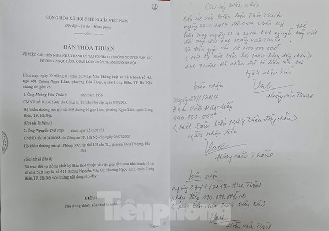 Trên cơ sở hiểu biết tin cậy lẫn nhau bằng văn bản này bên A (ông Thành) và bên B (ông V.) đồng ý cùng nhau góp tiền để mua thanh lý căn nhà nói trên theo tỷ lệ góp tiền là 50/50, cụ thể mỗi người góp 2,3 tỷ đồng".