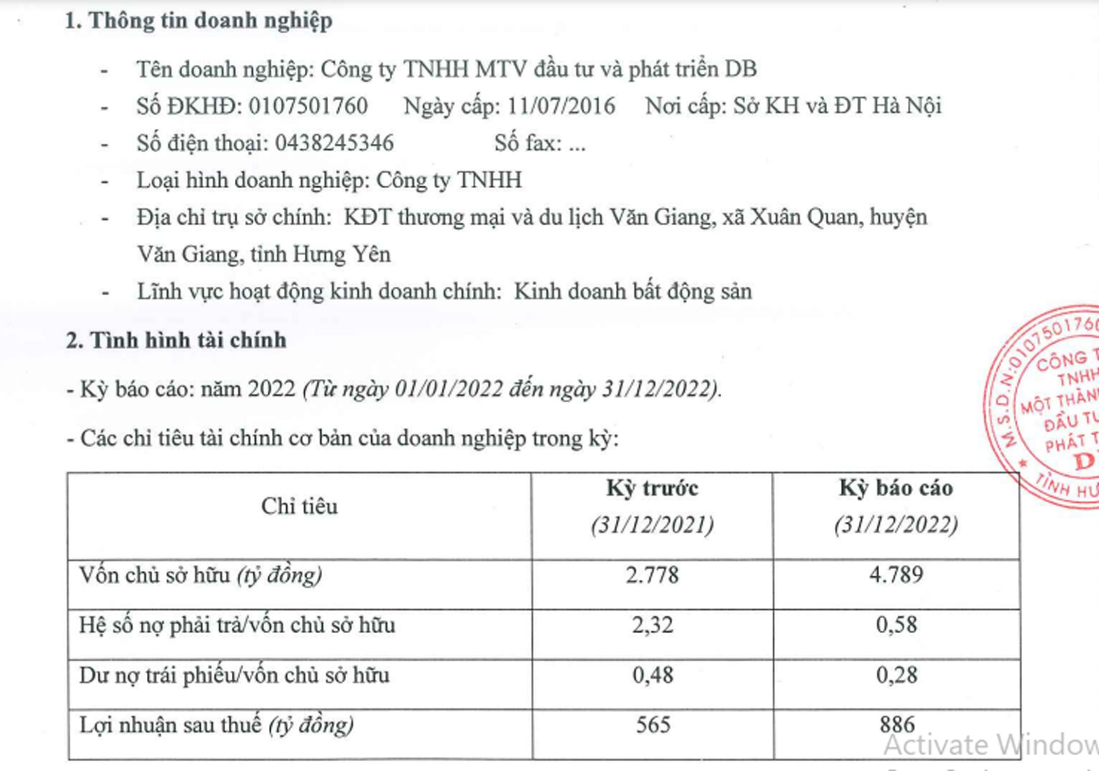 Theo VnDirect, Công ty TNHH MTV Đầu tư và Phát triển DB được thành lập năm 2016 với vốn điều lệ 250 tỷ đồng, hoạt động chính trong lĩnh vực kinh doanh bất động sản.