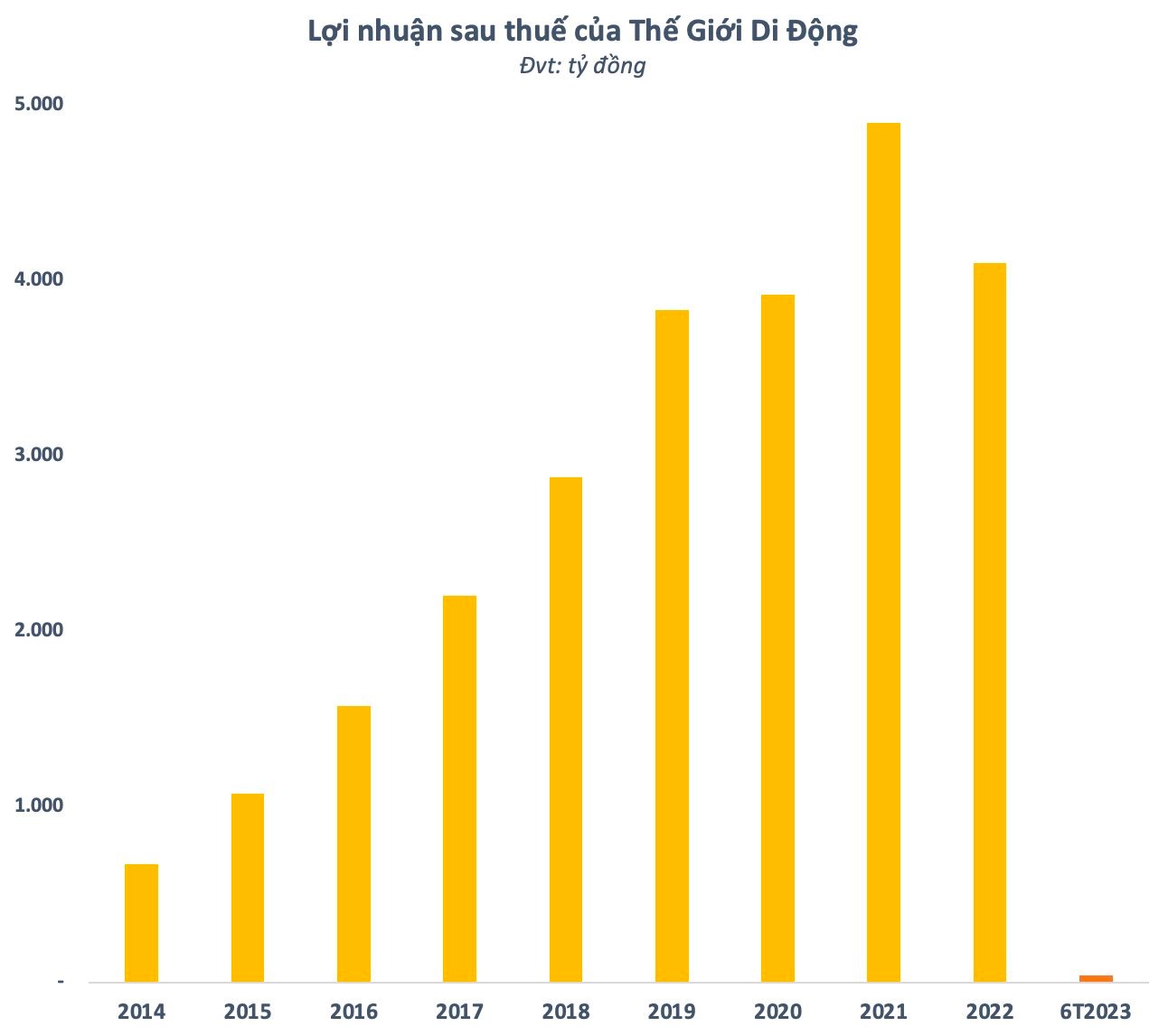 Sau giai đoạn bùng nổ với lợi nhuận liên tục tăng trưởng qua từng năm kể từ khi lên sàn năm 2014, tình hình kinh doanh của Thế Giới Di Động đã bắt đầu gặp nhiều khó khăn từ nửa sau của năm ngoái. Sức mua suy yếu trong môi trường lạm phát và lãi suất cao khiến doanh thu và lợi nhuận của doanh nghiệp bán lẻ này liên tiếp sụt giảm trong 2 quý cuối năm.