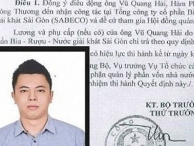 Theo kế hoạch chi trả tiền lương và thù lao của người quản lý Sabeco năm 2016, ông Vũ Quang Hải – con trai của nguyên Bộ trưởng Vũ Huy Hoàng có thể nhận hơn 1 tỷ đồng.