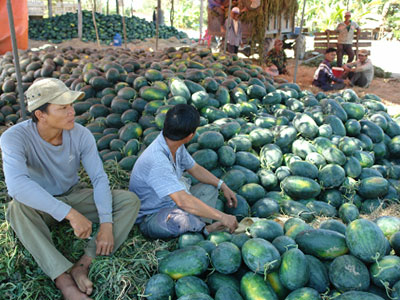 Dưa hấu Tết 1.000 đồng một kg bán đổ đống ven đường