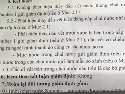 Ngày 7-2, Viện Khoa học hình sự (Bộ Công an) đã có kết luận giám định vụ chai nước Number one bằng nhựa của Công ty Tân Hiệp Phát do cơ quan CSĐT công an tỉnh Tiền Giang trưng cầu giám định.