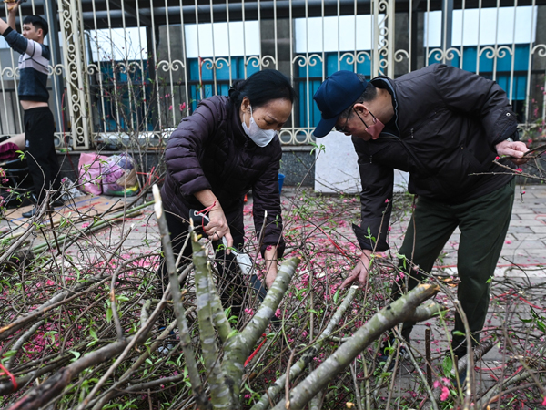 Nhiều người xin cành đào chiều 30 Tết, tiểu thương quyết chặt bỏ cho lên xe rác