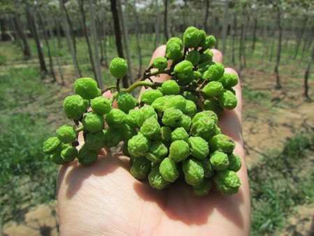 Hơn 1.300 gốc nho của anh Tâm đều đang trong giai đoạn cho trái và đơm bông, ước tính có hơn 10 tấn nho sẽ được thu hoạch khi đến vụ. Để có được rẫy nho hơn 1.300 gốc này, trong gần bốn năm qua gia đình anh Tâm đã đầu tư trên 1 tỉ đồng, trong đó phần lớn là vay ngân hàng và người thân.