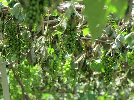 Vườn nho 1.300 gốc này của anh Trương Tấn Tâm ở KP 10, thị trấn Phước Dân. Anh Trương Tấn Tâm cho biết có 118 gốc nho bị dùng dao chặt ngang gốc, số còn lại chết do có người lén bỏ thuốc diệt cỏ vào bồn pha thuốc xịt nấm, sau khi gia đình tiến hành xịt nấm cho trái thì toàn bộ rẫy nho đều héo rũ, không thể cứu chữa.