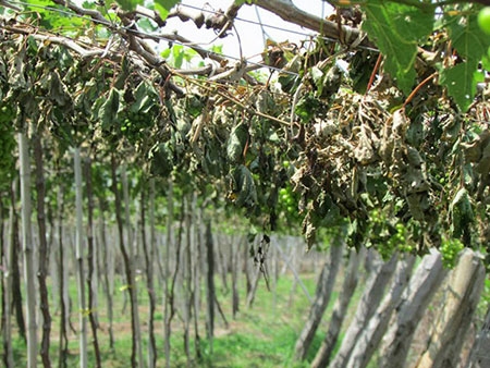 Những hình ảnh tan nát, héo rũ của rẫy nho 1.300 gốc sau khi bị phá hoại